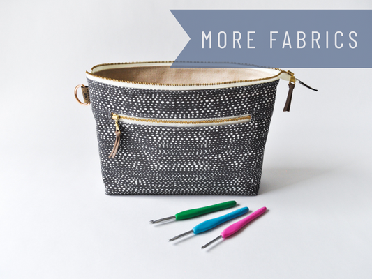 A zippered pocket in the front is perfect for storing small notions and tools.