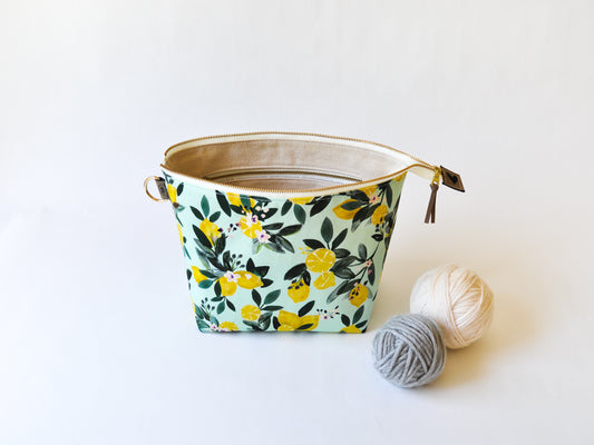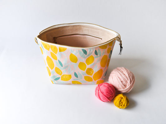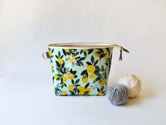 SLIGHTLY IMPERFECT - Small Project Bag in "Yellow Lemons"